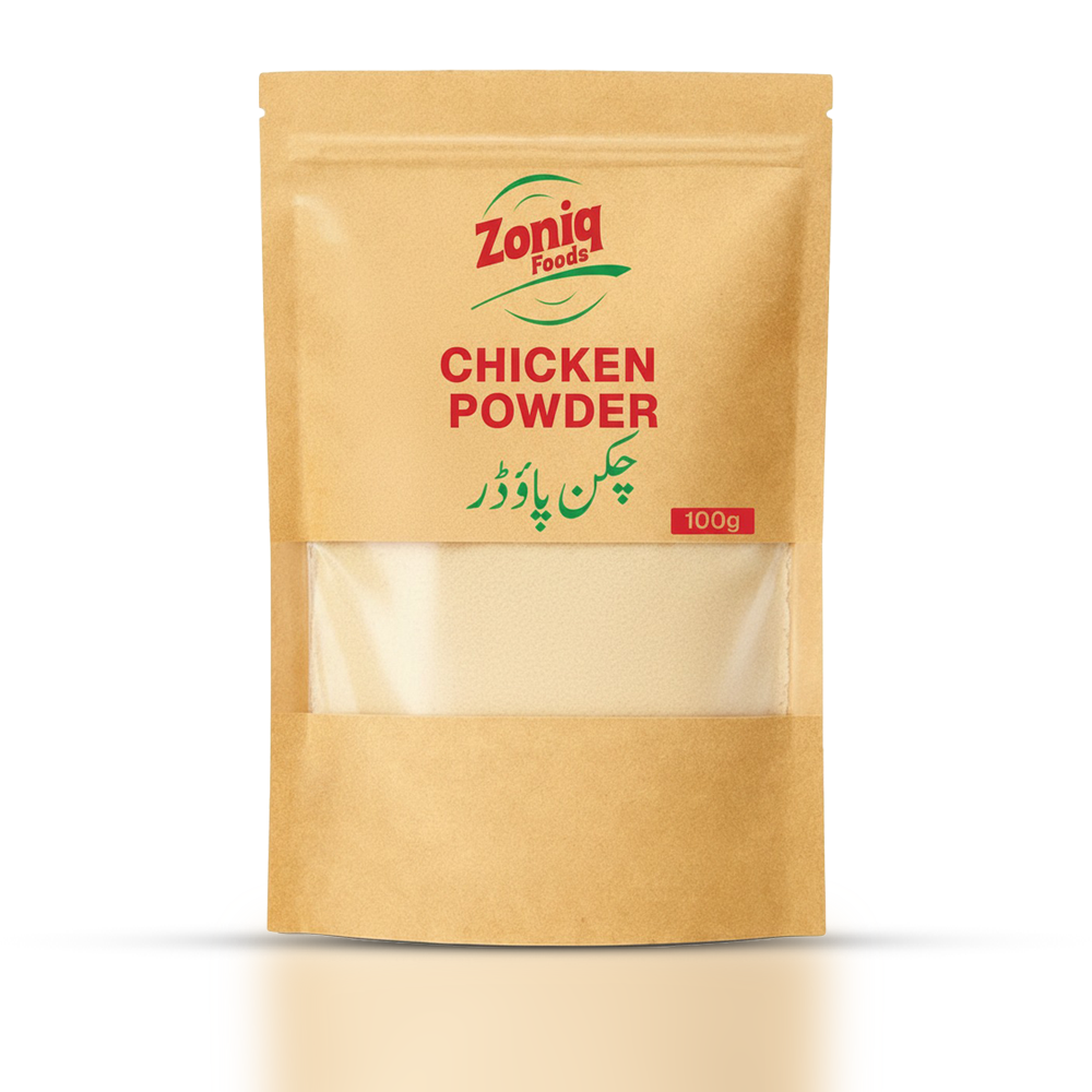 Enhance the taste of your meals with Chicken Powder 100g by Zoniq Foods. 100% pure, flavorful, and hygienically packed for easy, delicious cooking every day.