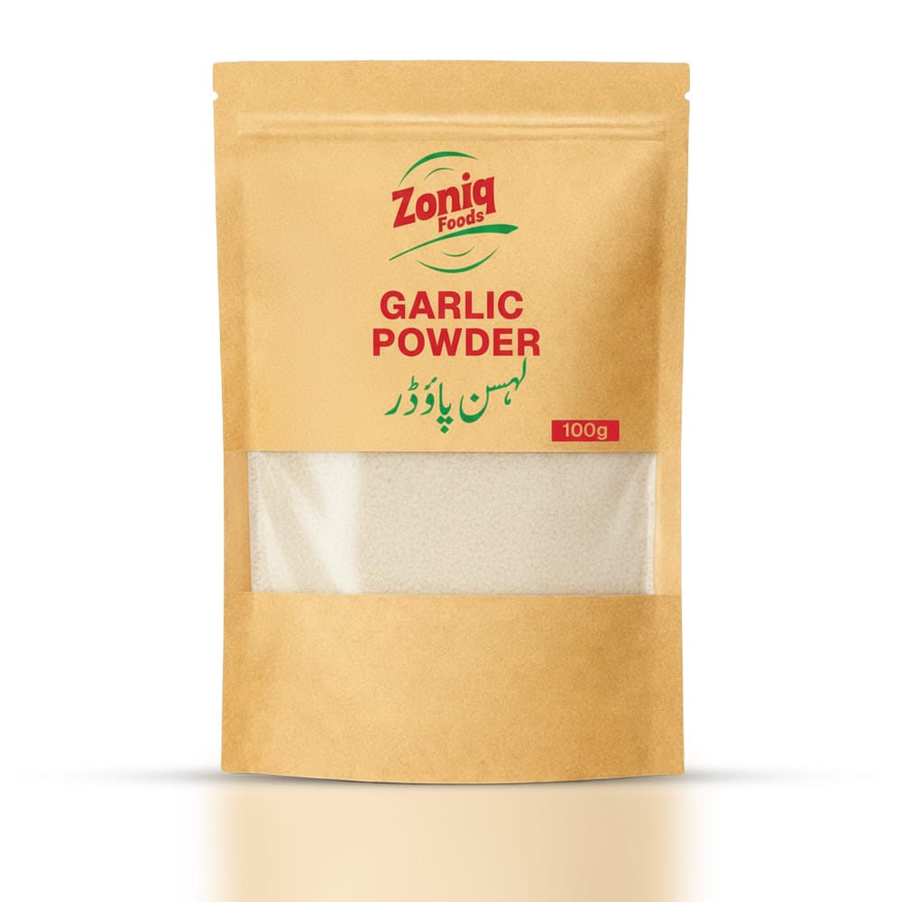 Enhance the taste of your meals with garlic Powder 100g by Zoniq Foods. 100% pure, flavorful, and hygienically packed for easy, delicious cooking every day.